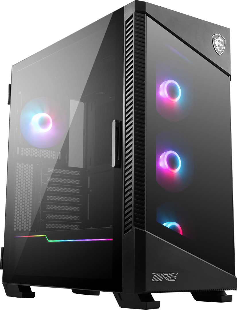MSI MPG VELOX 100R Mid Tower Gaming Computer Case 'Black 4x 120mm ARGB Fans 1-6 ARGB Hub ARGB light strip USB Type-C Temper